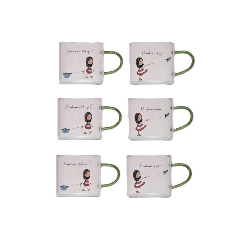 Set composto da 6 tazzine in vetro con manico verde e decoro La Tipa. Capacità 80ml. Scatola regalo inclusa. Linea Bomboniere solidali Cuorematto. Scegliendo questa linea contribuisci a sostenere Antoniano che realizza interventi educativi e riabilitativi per bambini affetti da sindrome di down, autismo e patologie di ritardo mentale. Con l'acquisto minimo di 40 pz ricevi in omaggio le partecipazioni e avrai la disponibilità di un sito internet esclusivo per le tue nozze. Per maggiori informazioni, per quantità superiori ad 1 pezzo contattare il punto vendita via mail all'indirizzo laculladelleidee@gmail.com o telefonicamente al n.+39 345 9452117