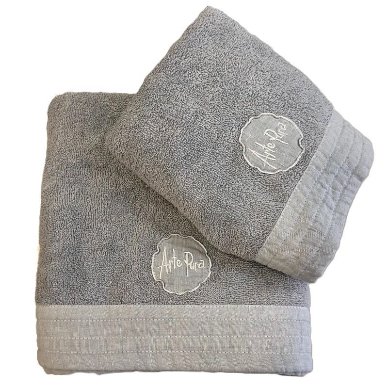 Set asciugamani viso e ospite in spugna con bordo lino Pensiero ArtePura
