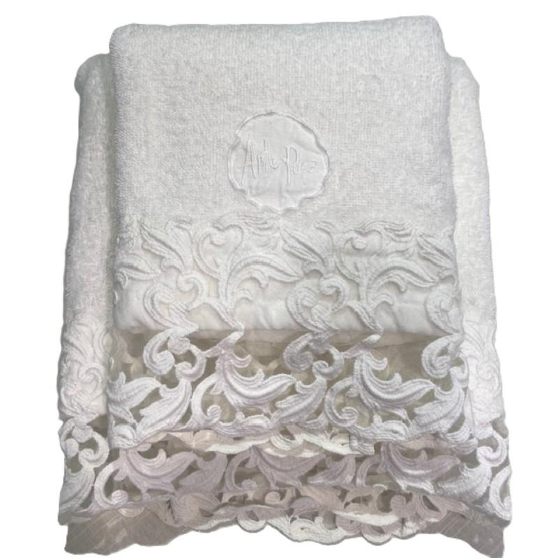 Set asciugamani viso e ospite in spugna con pizzo farnese bianco AP