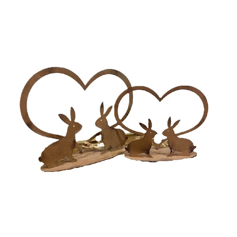 Coppia di coniglietti in metallo davanti ad un cuore per decorare la tua casa!