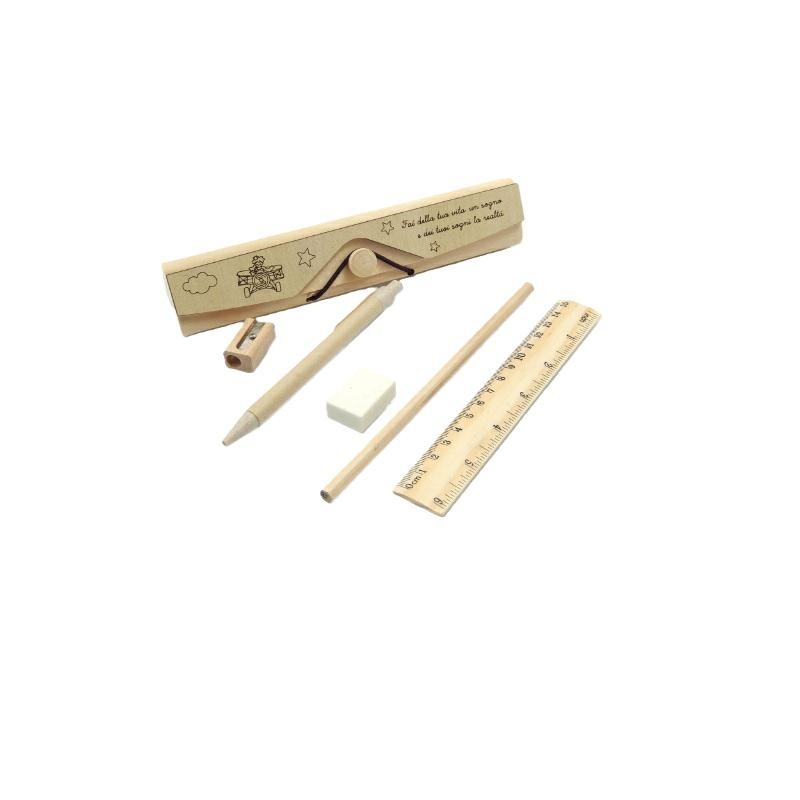 Asctuccio in bambù con set scrittura (penna,matita,gomma,temperino e righello), disegno Piccolo Principe con frase "Fai della tua vita un sogno e dei tuoi sogni la realtà". Dimensioni astuccio 20x4x4 cm Linea Bomboniere solidali Amici di Cuorematto. Scegliendo questa linea contribuisci a sostenere Antoniano che realizza interventi educativi e riabilitativi per bambini affetti da sindrome di down, autismo e patologie di ritardo mentale. Con l'acquisto minimo di 40 pz ricevi in omaggio le partecipazioni e avrai la disponibilità di un sito internet esclusivo per le tue nozze. Per maggiori informazioni, per quantità superiori ad 1 pezzo e per confezionamento bomboniere contattare il punto vendita via mail all'indirizzo laculladelleidee@gmail.com o telefonicamente al n.+39 345 9452117
