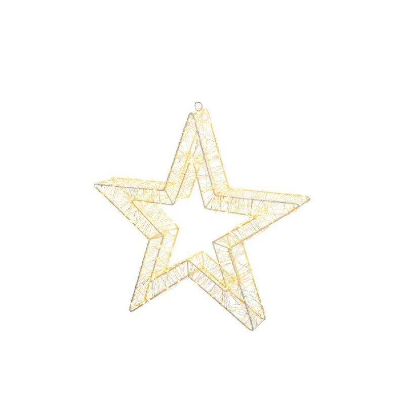 Stella in metallo con gancio per appenderla, ricoperta da 1440 led con presa di corrente integrata.