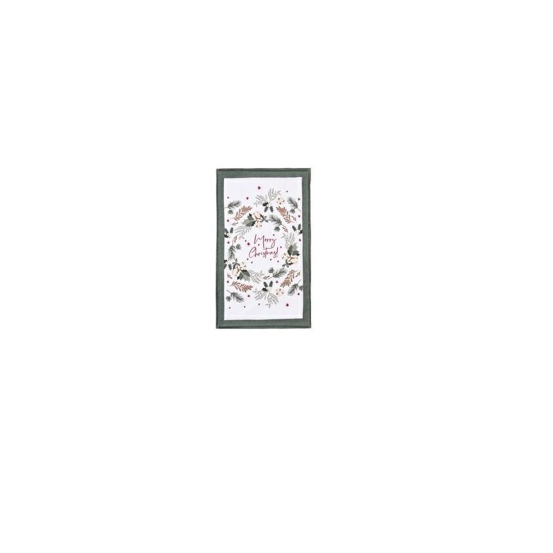 Strofinaccio in spugna di cotone con decoro ghirlanda e scritta Merry Christmas.