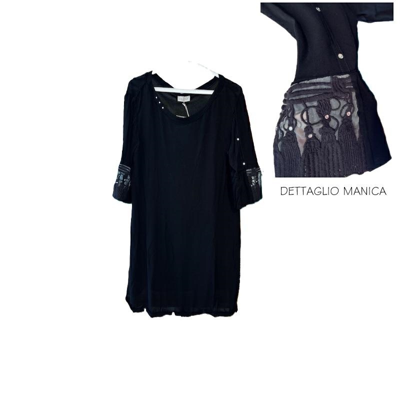 T-shirt in 100% viscosa con scollo tondo con pizzo nappine sulle maniche e cristalli.