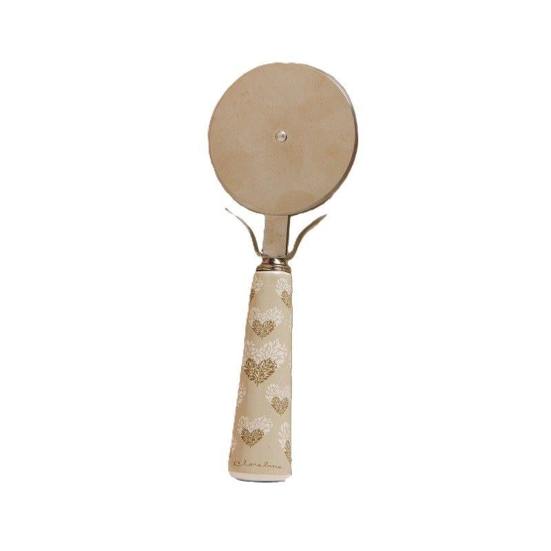 Tagliapizza in ceramica con decoro cuori e base colorazione chiara. Dimensioni 15cm. Linea Bomboniere Claraluna.Comprensiva di scatola. Per quantità superiori ad 1 pezzo contattare il punto vendita via mail all'indirizzo laculladelleidee@gmail.com o telefonicamente al n.+39 345 9452117