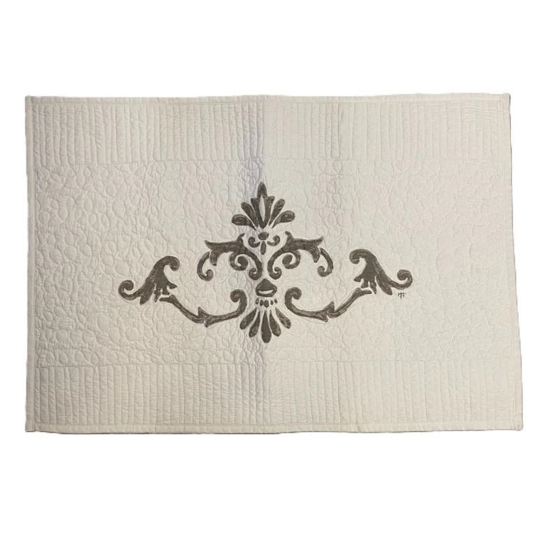 Tappeto da bagno morbido trapuntato con decorazione grigia al centro.