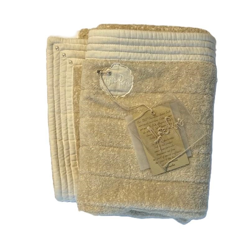 Tappeto in spugna con bordo in misto lino e mezze perle Arte Pura
