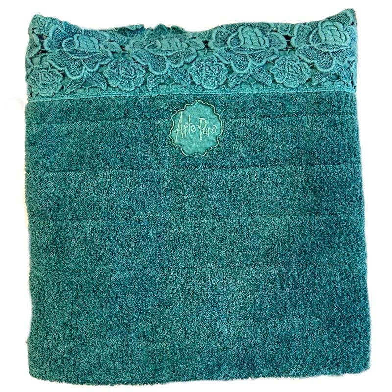 Tappeto in spugna di cotone con applicazione pizzo Rose su quattro lati.