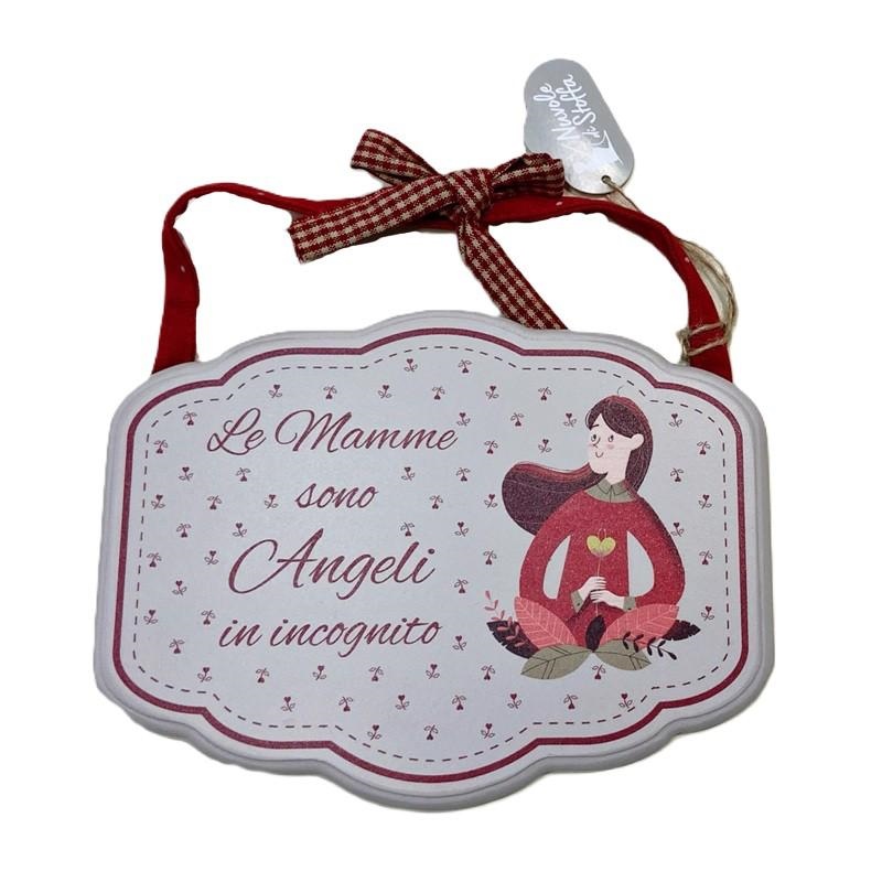 Targhetta in legno con laccetto per appenderla e decorazione dedica mamma: "Le mamme sono angeli in incognito".