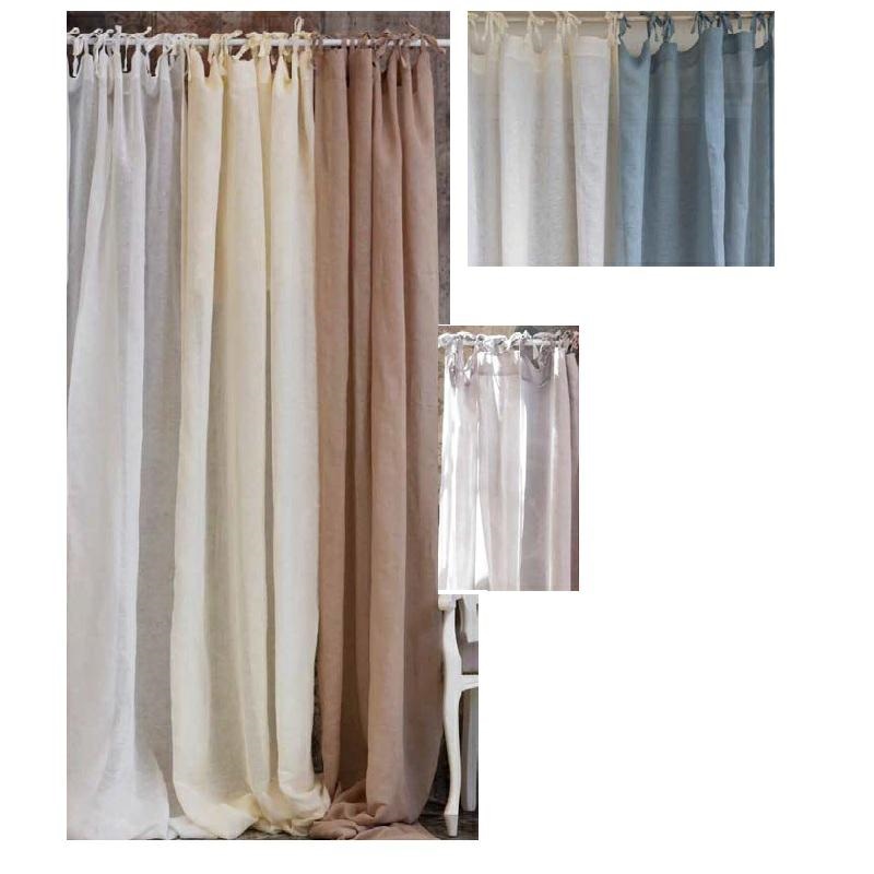 Tenda in lino e cotone con laccetti della linea Soleil color bianco.