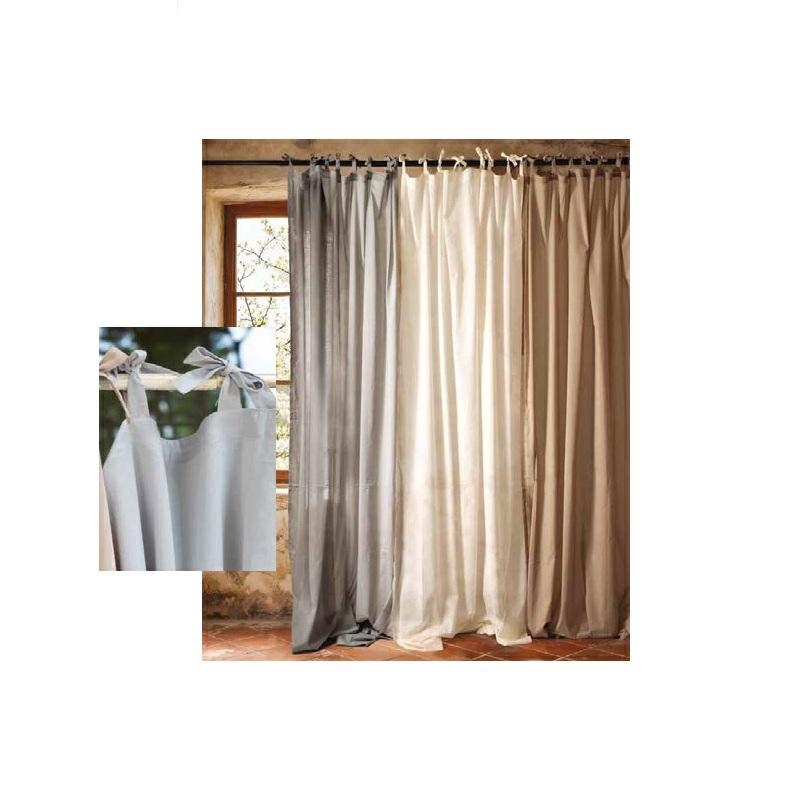 Tenda in voile di cotone della linea Nuage color grigio con laccetti.