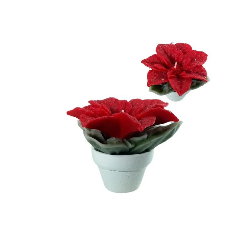 Vasetto di gesso con candela artigianale profumata a forma di stella natalizia, rosso.