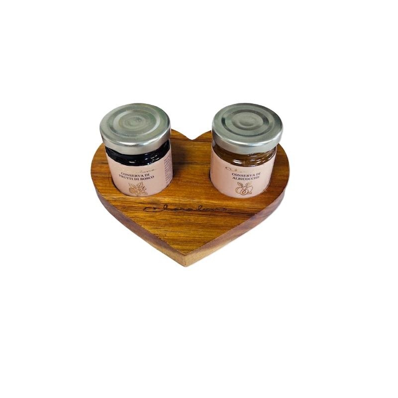 Vassoio in legno acacia con set di marmellate Frutti di bosco e Albicocca. Linea Bomboniere Claraluna.Comprensiva di scatola. Per quantità superiori ad 1 pezzo contattare il punto vendita via mail all'indirizzo laculladelleidee@gmail.com o telefonicamente al n.+39 345 9452117