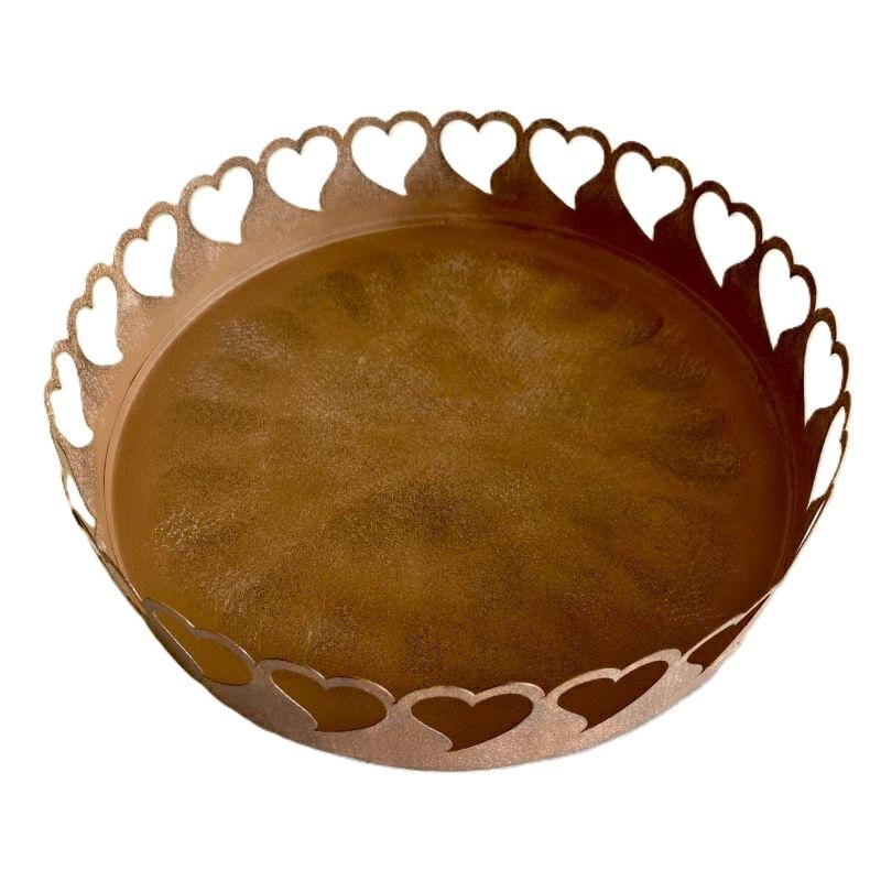 Vassoio in metallo con decorazione forata cuoricini su tutto il bordo.
