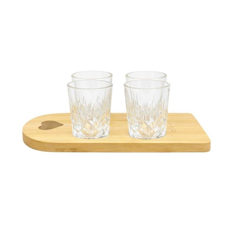 Vassoio in legno bamboo con 4 bicchierini in vetro.